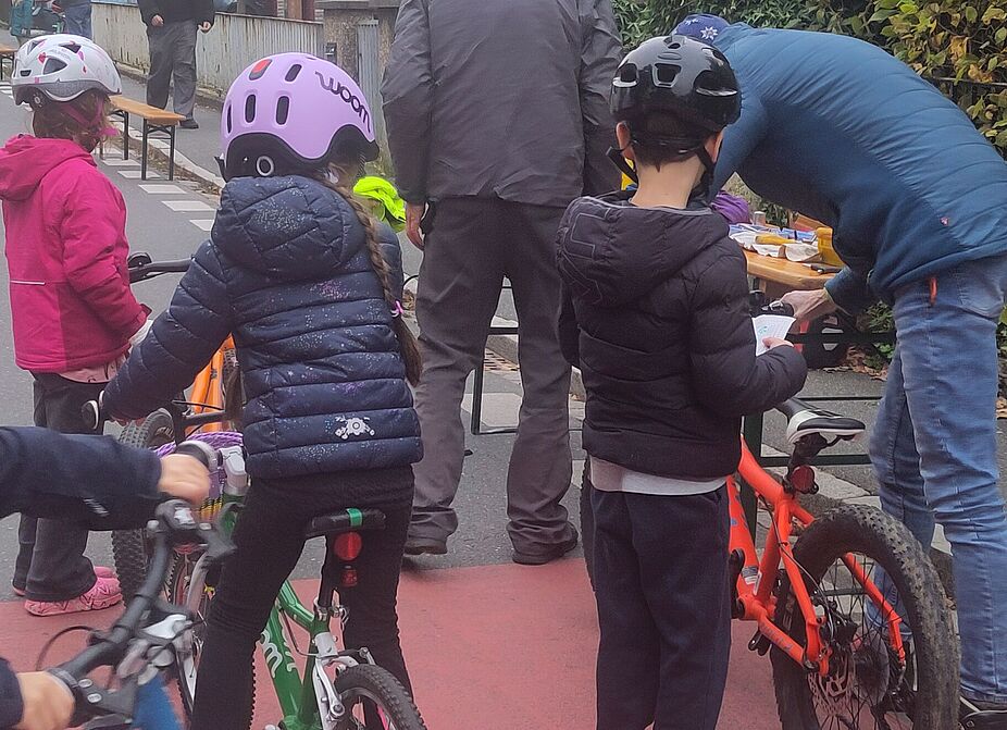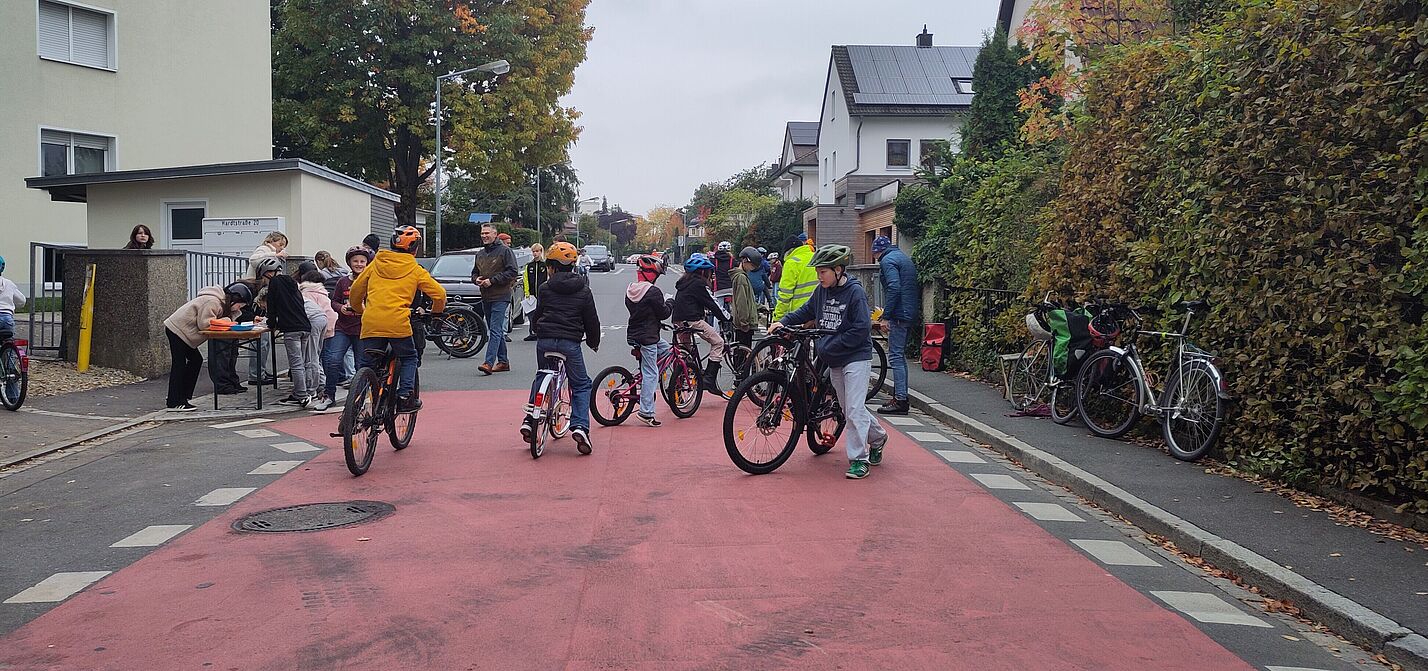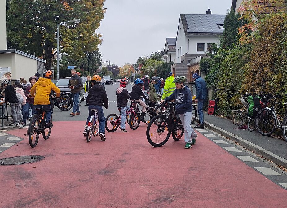 Diese Aktion am Freitag, den 10. Oktober 2025 ist eine Kooperation der Grund- und Mittelschule Kunigund, des ADFC Nürnberger Land, der Fahrradwerkstatt des Café SCH-LAU e.V. und des FabLab aus Schnaittach. Dafür wurde die Fahrradstraße von der Ahorn- bis zur Lärchenstraße gesperrt.